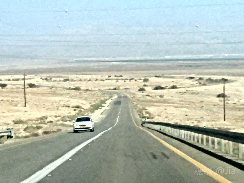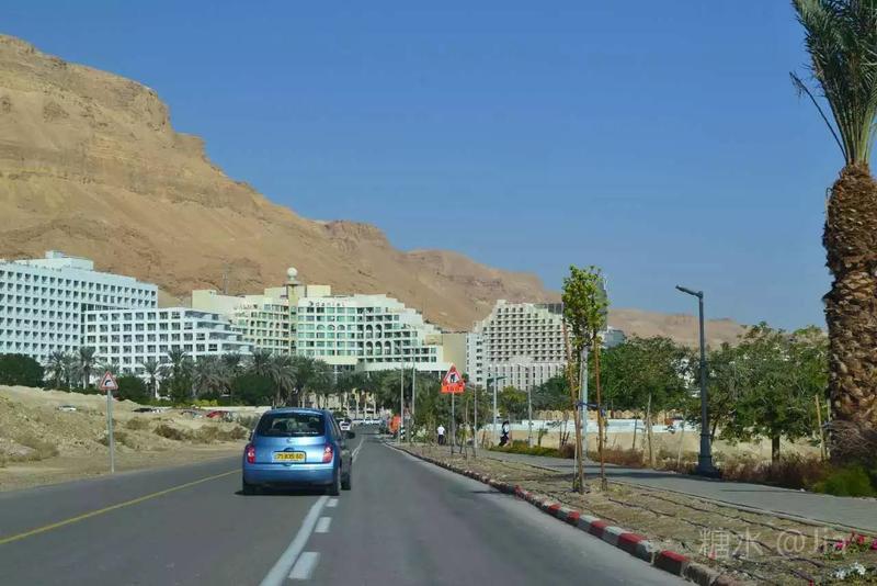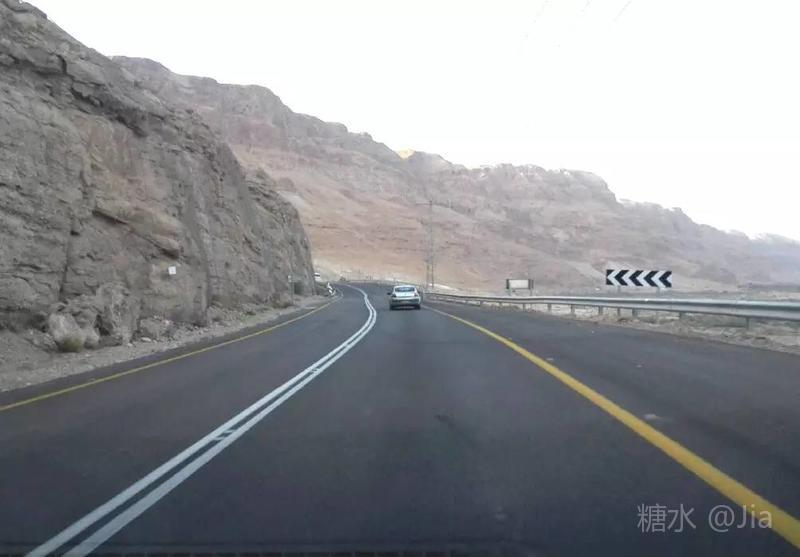 特拉维夫是个科技和时尚之都,兴起才近百年,消费奇高,这不是我们的兴趣所在。按计划,下一目的地是死海。 去死海有两条线路,走西部平原的6号公路转31号公路经定居点Arad到死海。和走1号公路经耶如撒冷再换90号公路沿巴勒斯坦和约丹边境到达死海。 我选了路况较好的前者,留着后者回程时慢慢到访其它景点。这一选择被证明是明智的,虽然3小时的车程中出现坑爹的失去卫星导航信号的情况,要靠路标地图判断是否开岔道了,但总算还是在天黑前顺利到达了死海的Ein Bokek。否则,在近死海处海平面下降300米,一路上的很多急弯坡路在晚上将会是很考验驾车人的。