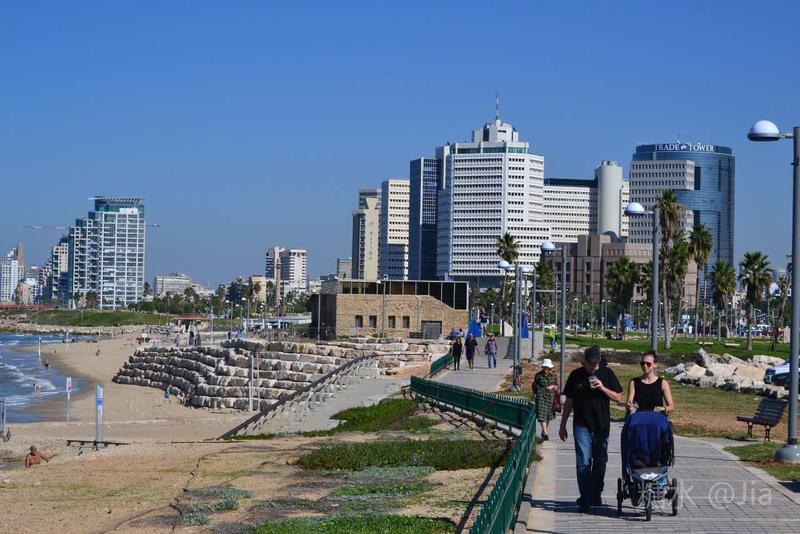 来以色列之前一直担心安全问题,亲朋好友多有诧异之色。问了一些欧洲人,也都没去过,以目前的形势,不是告诫careful, 就是说crazy。 但是,连接特拉维夫和雅法古城5公里长的海滨还是一派祥和景象,没见一个警察和士兵。