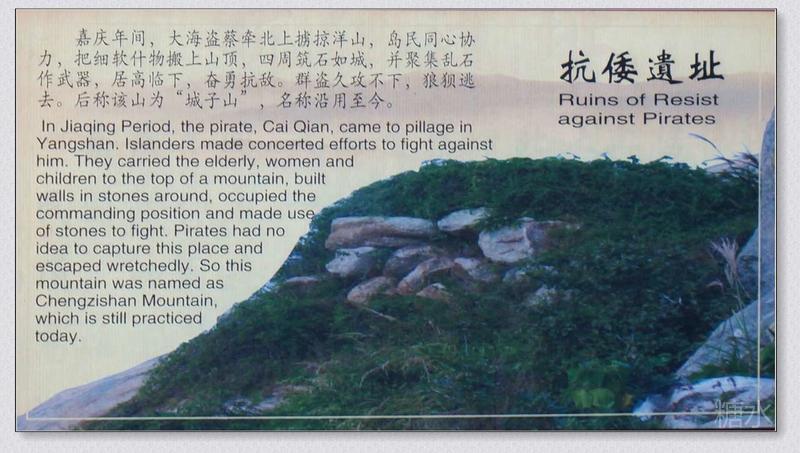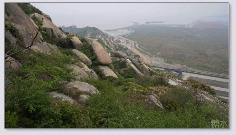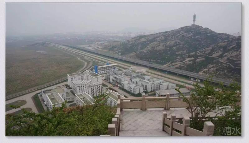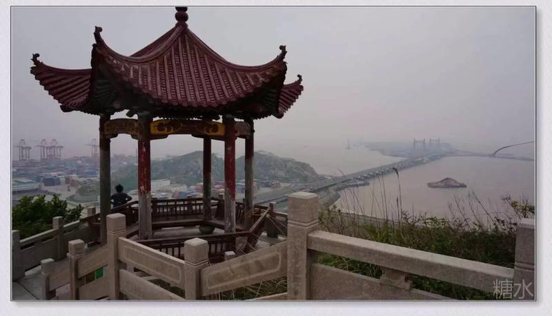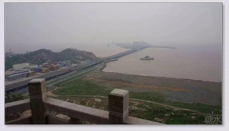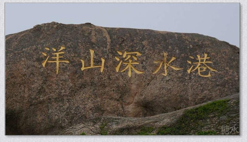 登上峰顶,“洋山深水港”五个金色的大字镌刻在巨石上,站在观景平台上,远眺横跨东海的大桥、俯瞰国际航运中心——洋山深水港区、近观坚固壮观的拦海大堤。