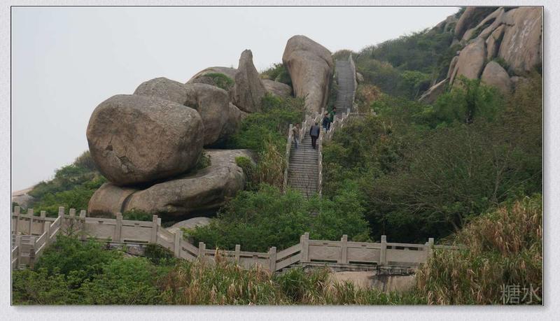 沿着石阶攀登而上,壮观的摩崖题刻,优美的海岛风景让人目不暇接。登高望远,移步易景,美不胜收。
