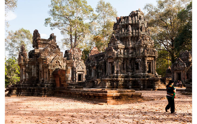 塔布伦寺,是吴哥众多奇观中最引人入胜的一个,电影【古墓丽影】和【虎兄虎弟】也都以塔布伦寺作为外景。这座12世纪大乘佛教的寺庙是吴哥时代最大的建筑之一,它基本上保持了一个世纪前第一批法国探险家看到它时的原样。尽管吴哥的其他重要古迹都被纳入浩大的保护计划 ,四周吞噬一切的丛林都被清理掉,但这座佛寺却任由大自然肆意处置,有些地方已经破败不堪。