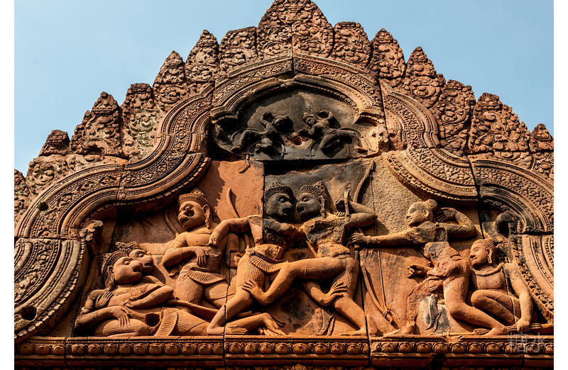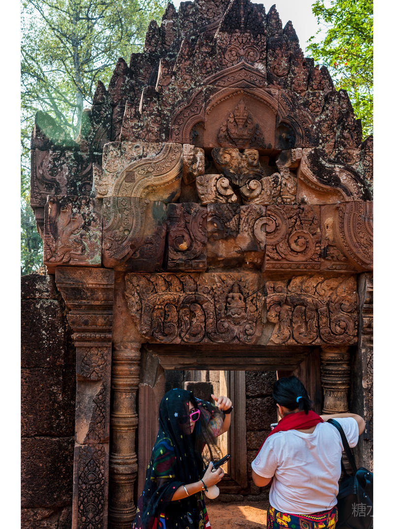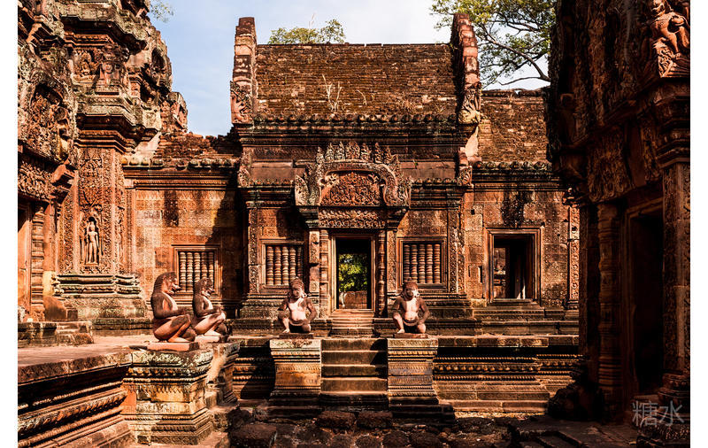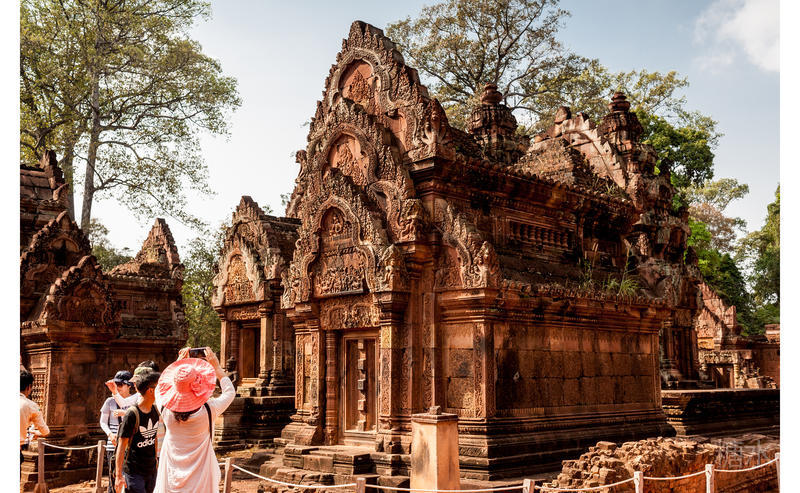 很多人认为女王宫是吴哥艺术王冠上一颗璀璨的明珠。第一眼你可能会因其规模而感到失望,然而一旦身处其间,你就不能不为装饰其门廊和墙壁的精美雕刻深深打动。最好在接近傍晚时分或者清晨去参观,因为这时的太阳光线会使粉红的沙石获得最佳效果。