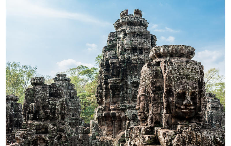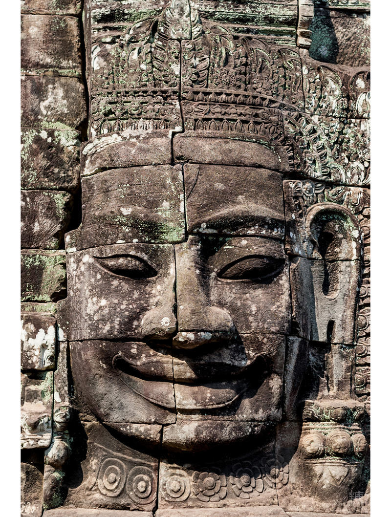 在令人难忘的巴戒寺有216张四面佛的巨脸俯视着游客。最有名的就是下面的特写“高棉的微笑”。