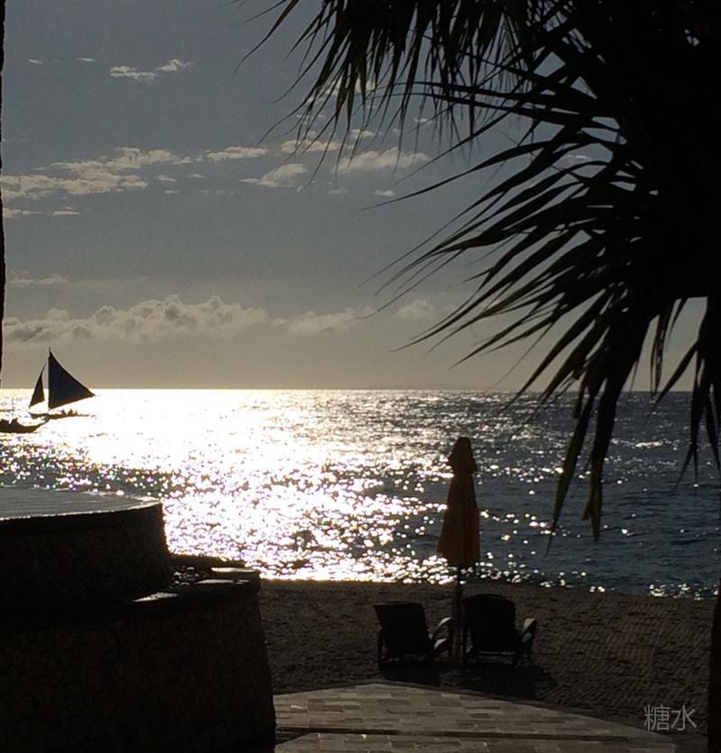 当太阳徐徐落下,长滩岛的海岸逐渐形成一片黄金长滩。香格里拉在日落的照耀下显得生气勃勃,闪闪发光的细沙、金黄色的遮阳伞和碧蓝色的海水衬托着酒店的每一处,让人过目不忘。
