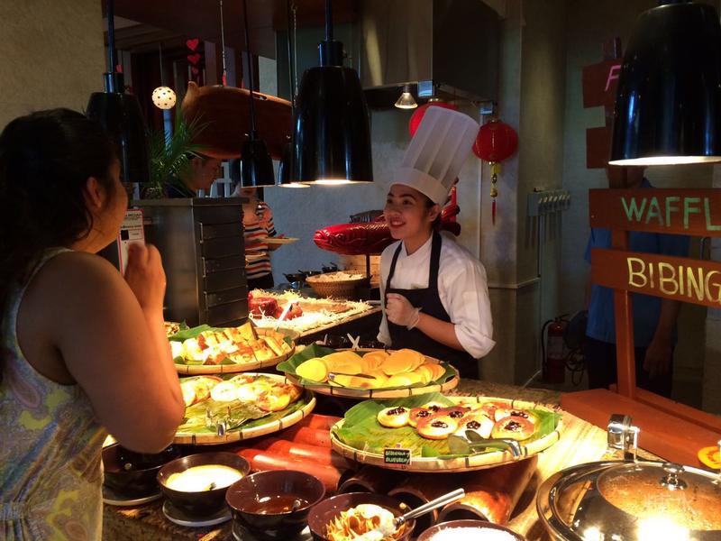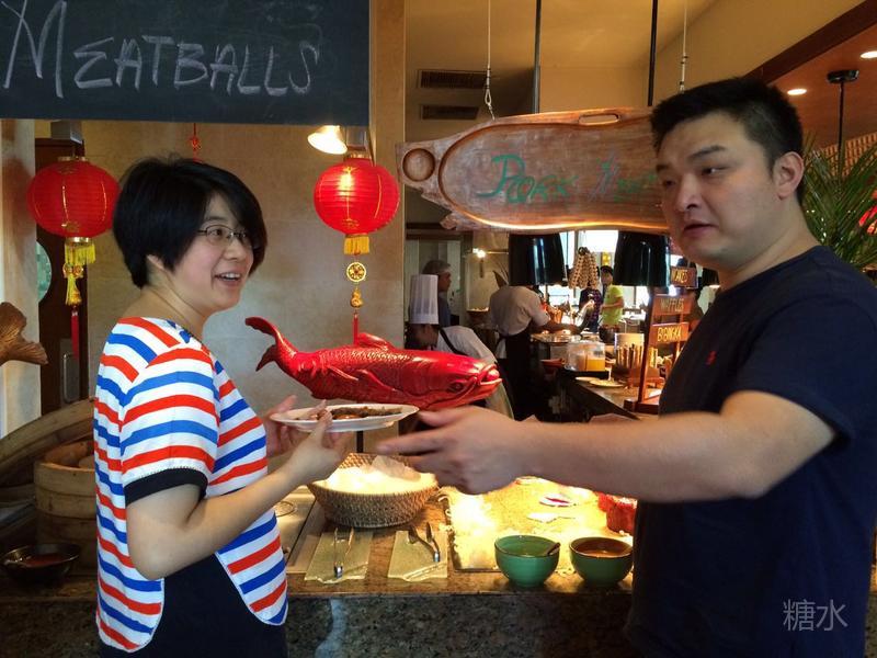 香格里拉有六个餐厅,每个餐厅有不一样的风格,让游客有宾至如归的感觉。我们在海鲜餐厅吃饭是刚到酒店的晚上,已经10点多,厨师和服务员以热情的态度和美味佳肴来欢迎我们,感动!/::<