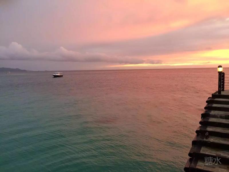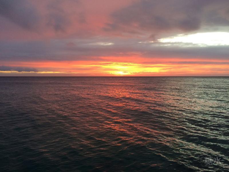 日落时分,太阳渐渐下山,美丽的余晖照在海面上,海水魔幻般的变绿变红变蓝,绚丽多彩,令人炫目。太喜欢这个画面了,拍爆了我的手机!