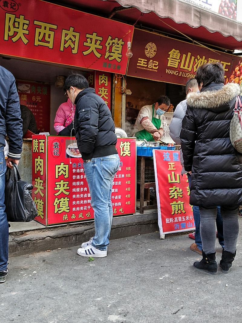 陕西的肉夹馍,一般是用上好面粉揉制后做成饼形,放入炉膛侧立,上下隔着铁铛板的炭火烘烤,稍顷翻面,双面焦黄的食品。