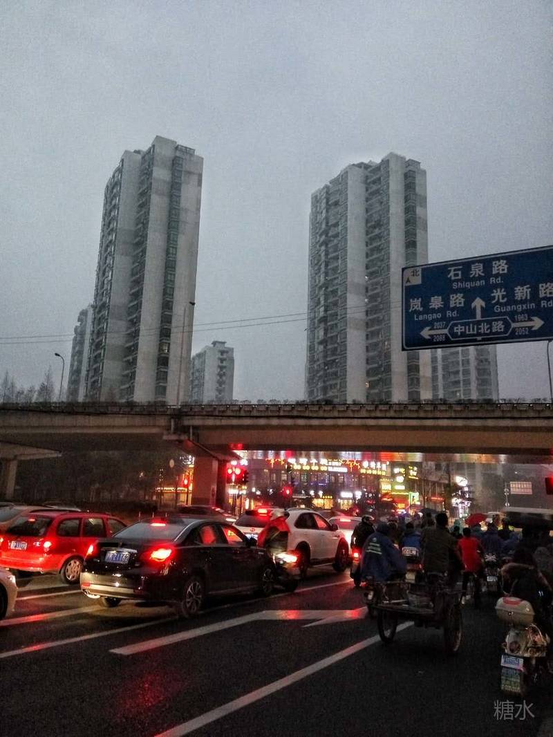 下午五点半的时候,华灯初上,马路口车水马龙排长龙了。