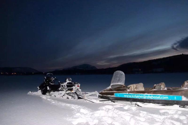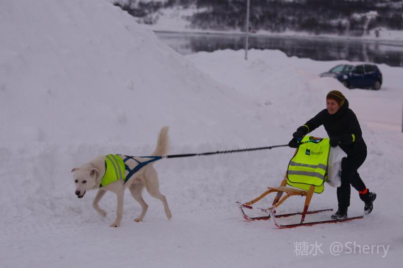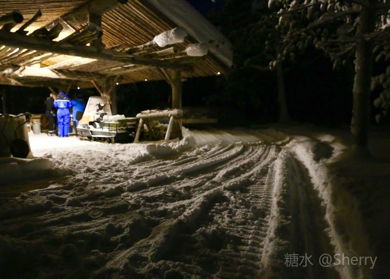先在渔民卢克大叔的小木屋里换上厚重的连身长外套、头盔、面罩、手套、袜子、鞋子,武装齐全后乘坐由卢克雪地摩托牵引着的平底雪橇,驰骋在茫茫雪原上。