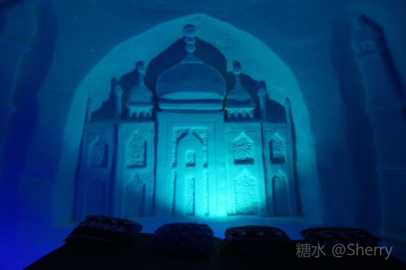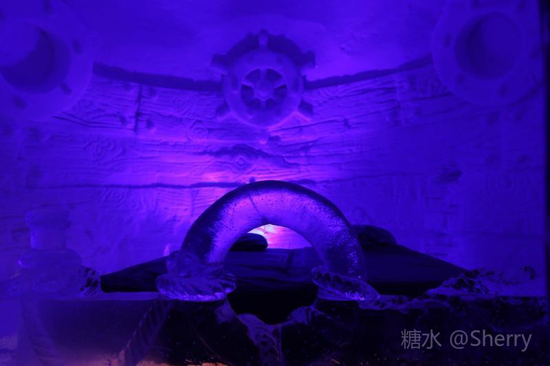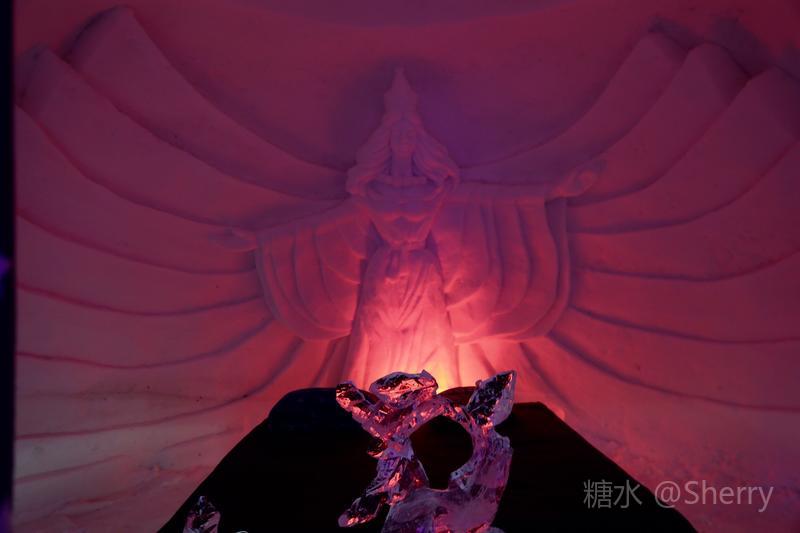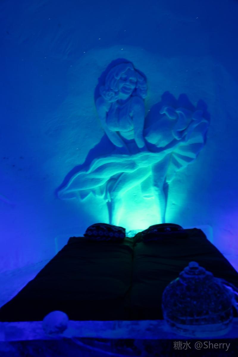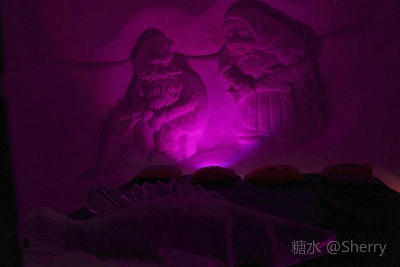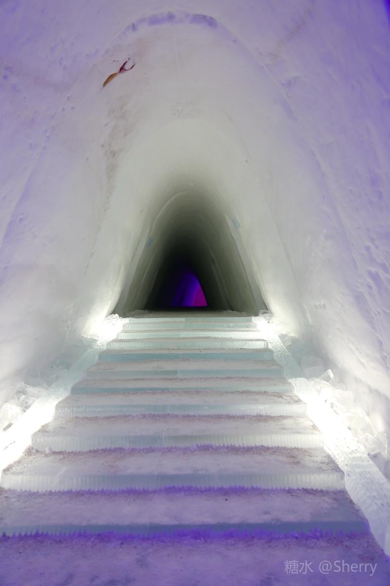 幽深的隧道,二边是一个个挂着布缦的冰窟,冰窟分单人、双人、四人等大小不同的规格,里面有各种各样的冰雕,据说这些冰雕工匠大多来自中国东北。