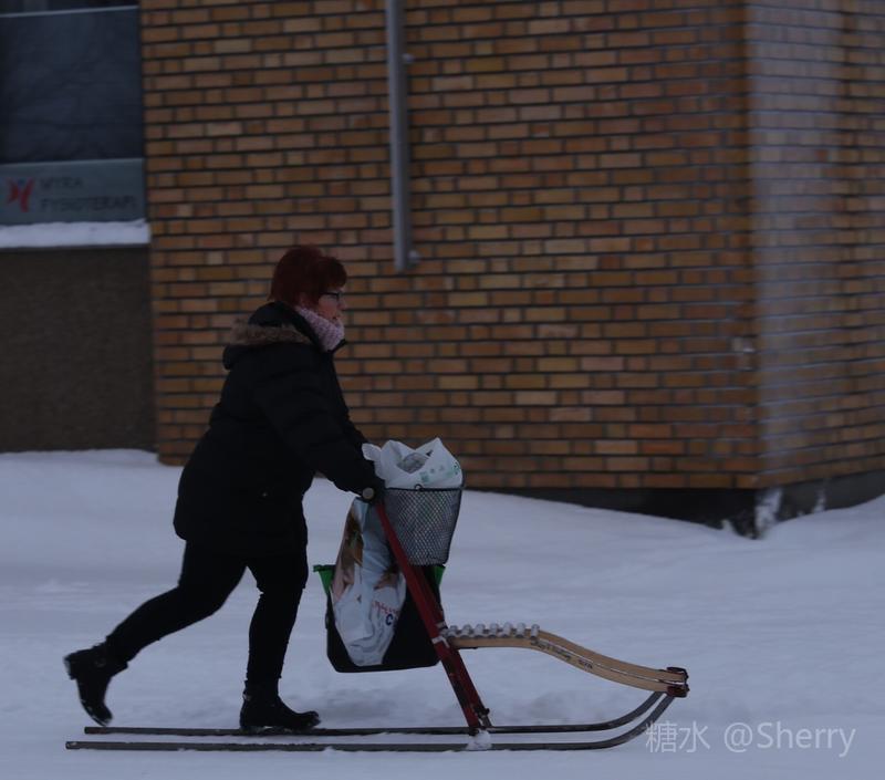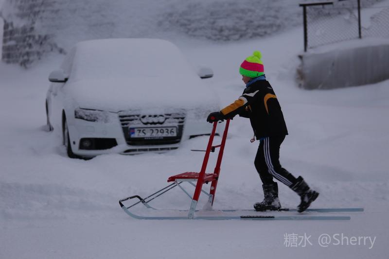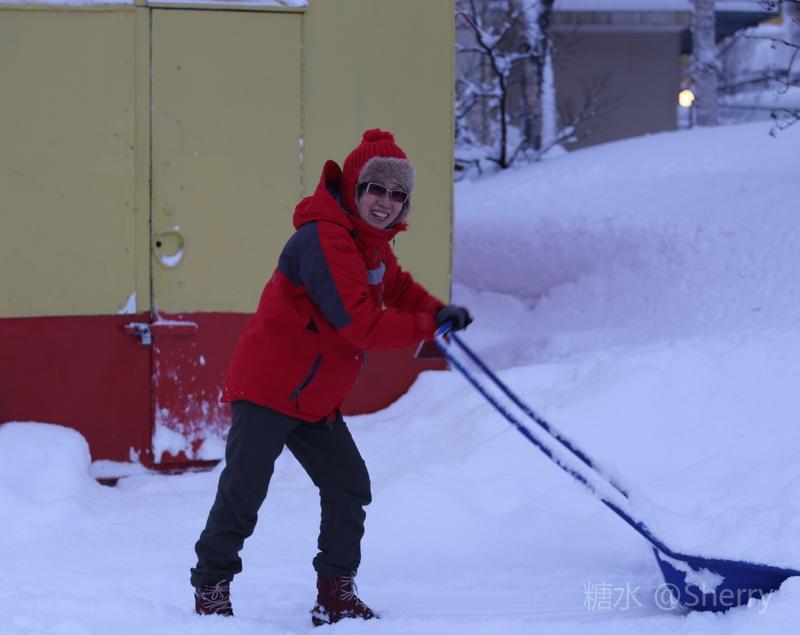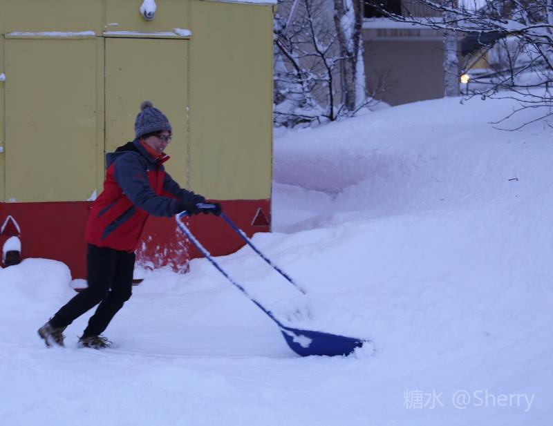 Joy和我没得玩雪橇,顺手玩起路边的雪铲,呵呵,做一会儿快乐的“清道妇”挺好。