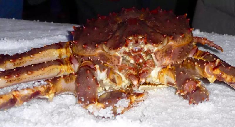 当天帝王蟹大的四公斤以上,最小也有二公斤多,可以盖住我的脸。