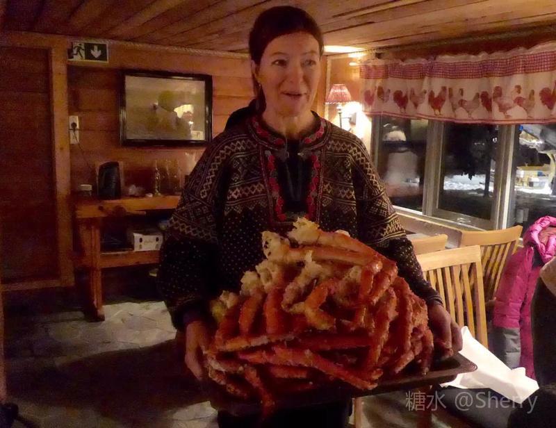 我们则是看着帝王蟹连同网兜从冰湖里捞上来。 卢克太太手脚利落地挨个一刀毙命,留下雪地里一滩滩的“Blue blood”(蓝血)。