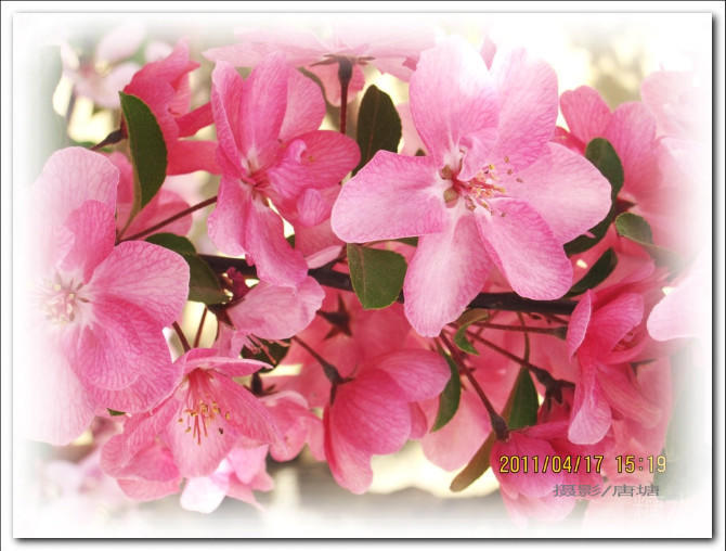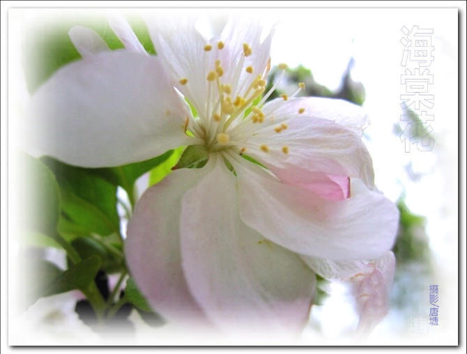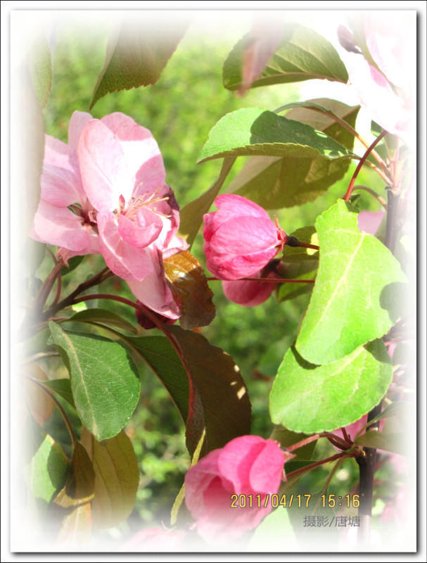 海棠枝上觅春痕,蝶翼花间魅影存。 只待残阳温意暖,初升夜月掩重门。——唐 塘