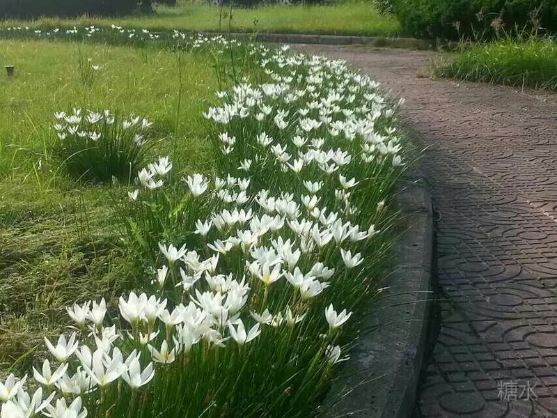 也不能算是喜欢,在这个长夏和初秋的时节,满眼都是疯长的绿,偶然间瞥见丛绿间星星点点的小白花,便有了新奇和驿动。这是长在单位大院里草坪边缘的葱兰。
