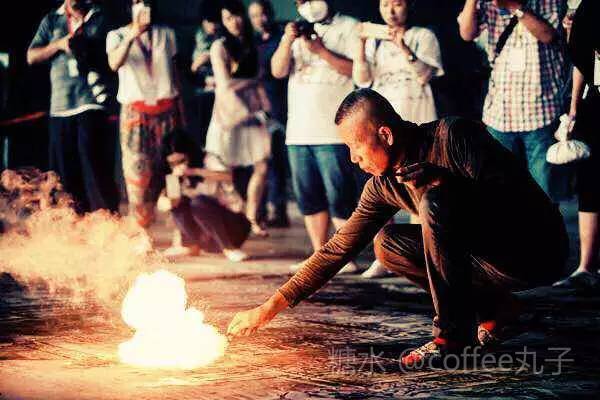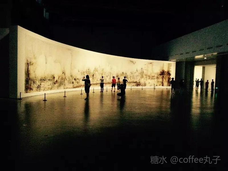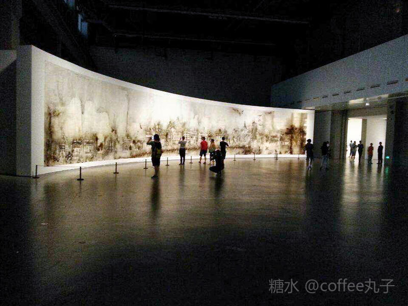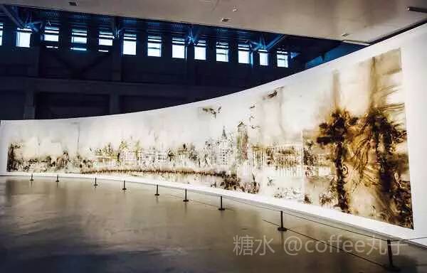 将外滩用火药画的形式表达,让人感觉震撼和亲切。27米長,4米高的火药爆破草图表现数百年沧桑轮回后,外滩返归自然的样子。