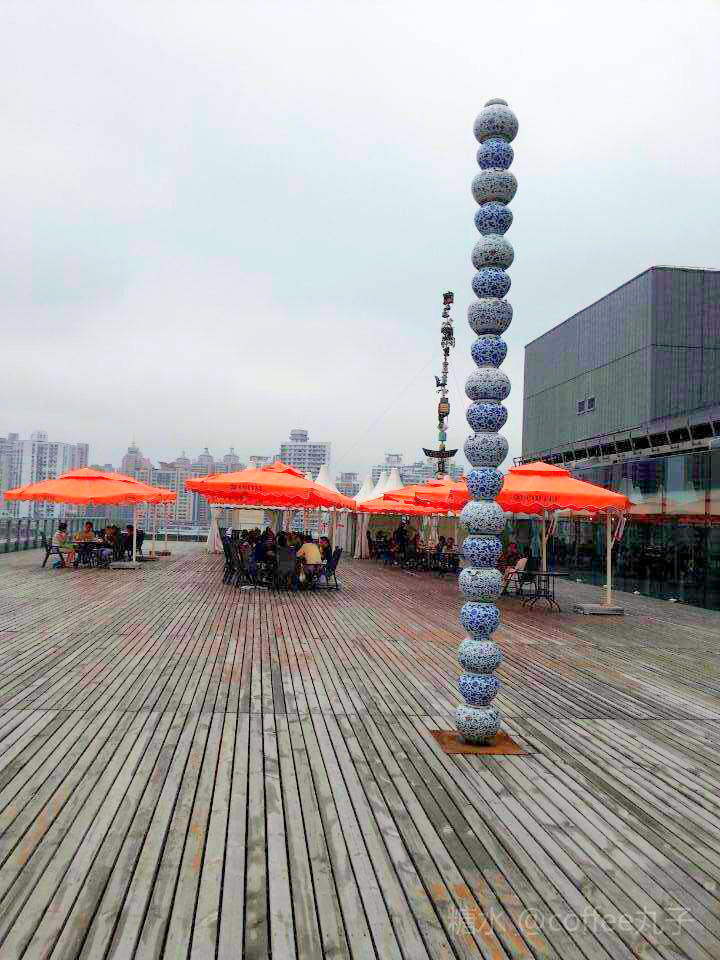 当我站在展馆发电站power staion的5楼露台,看到了当年世博会的各种场馆。红色的中国馆还赫然在目,黄浦江汽笛依然……