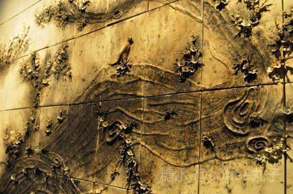 四件在福建徳化白瓷上爆破的大型火药陶瓷分别展现春夏秋冬四季的自然景色。