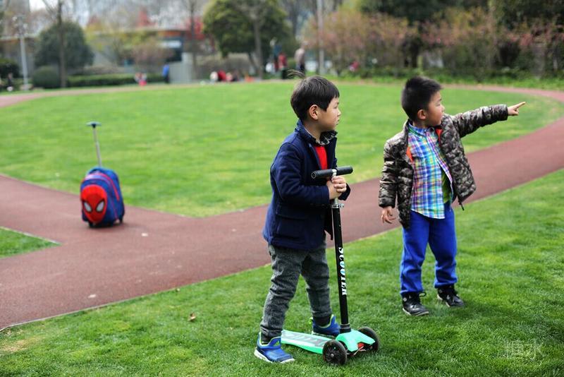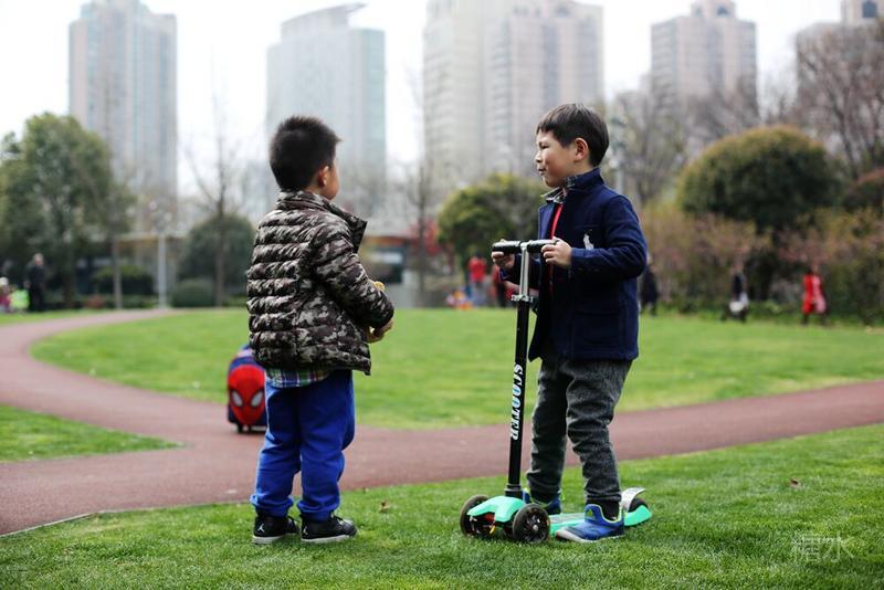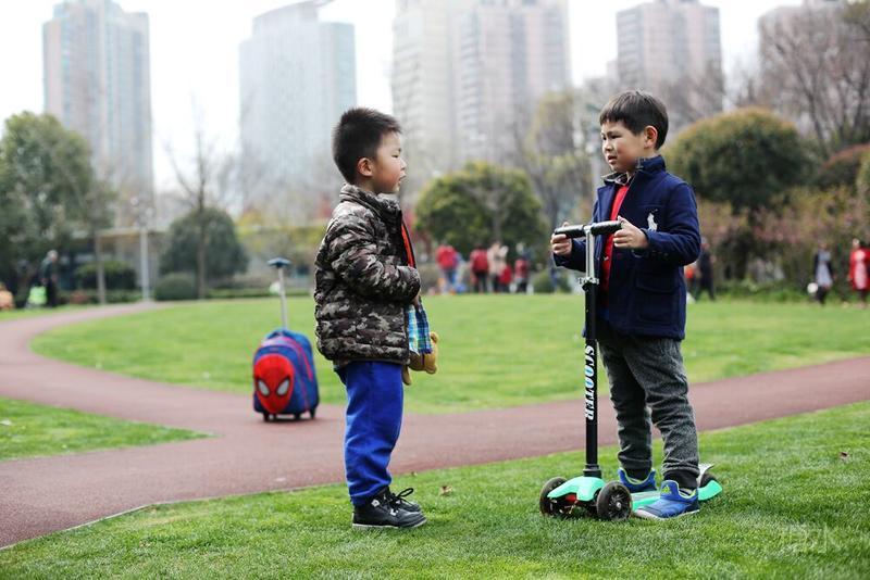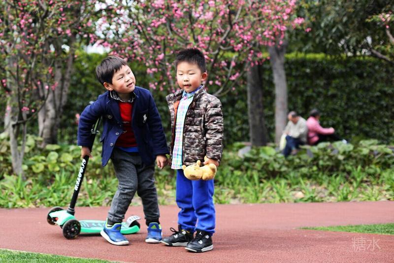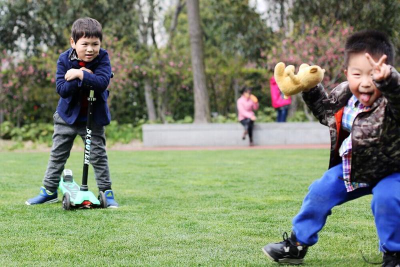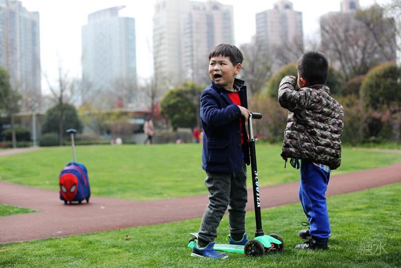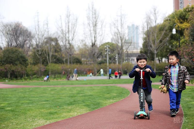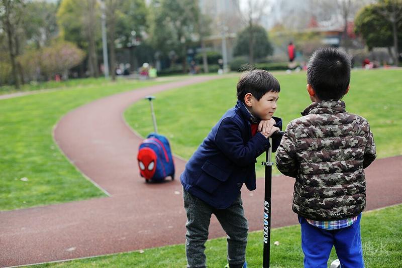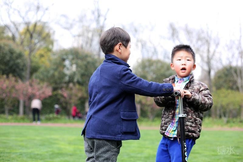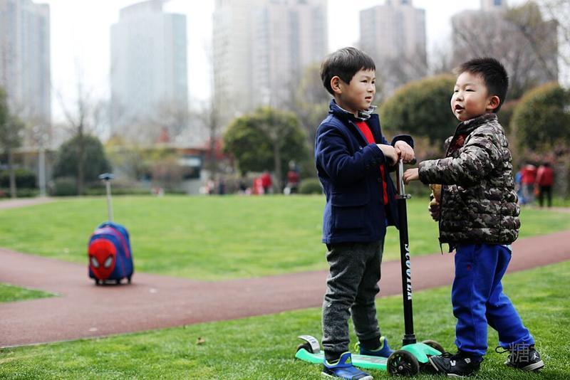 这天宝宝有点咳嗽,请假没有去幼儿园⋯⋯阳光不错,就想让宝宝晒晒太阳。 我们来到静安雕塑公园,宝宝看见红色的步道非常兴奋,因为带着滑板车有了武用之地啦! 遇见一个可爱的小子,然后互相搭讪着玩耍⋯⋯我发现宝宝们交流的神态不错,所以进行跟着拍摄。 至于什么故事,大家自己想吧⋯⋯