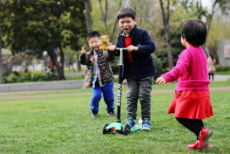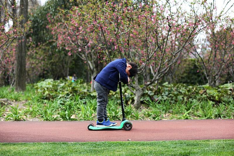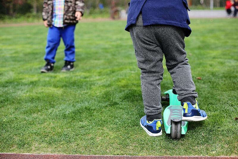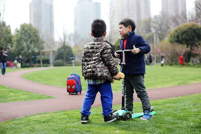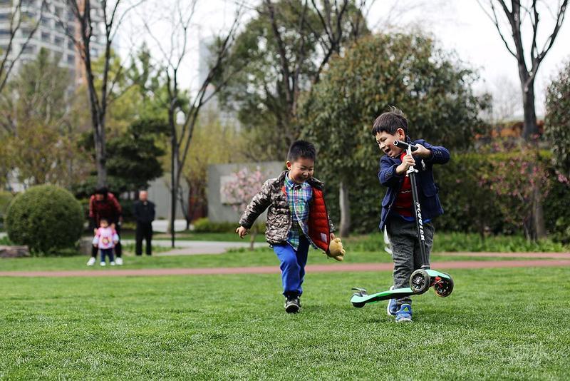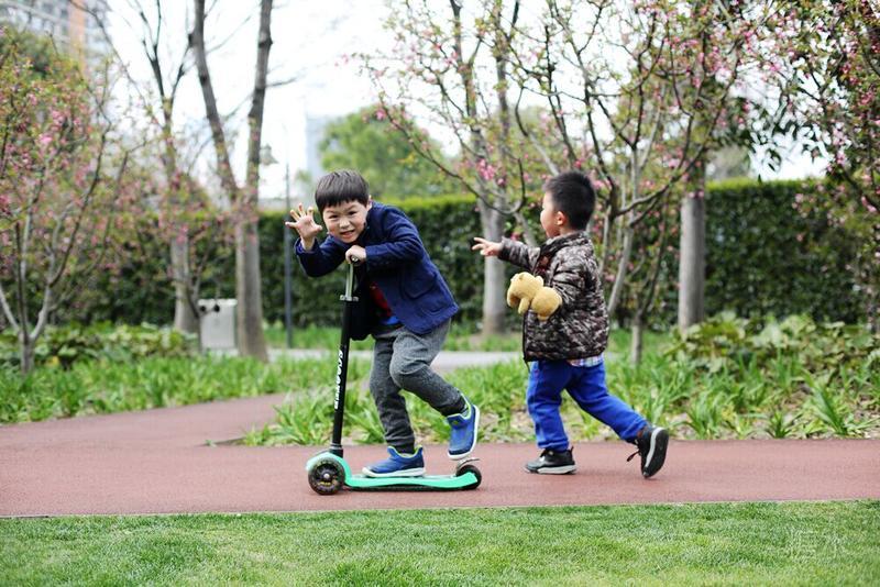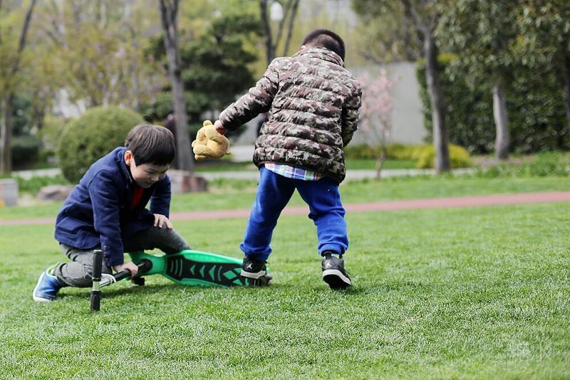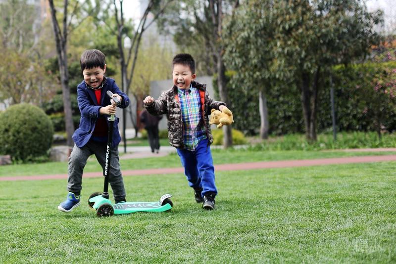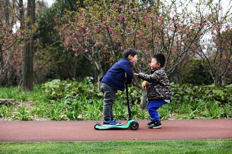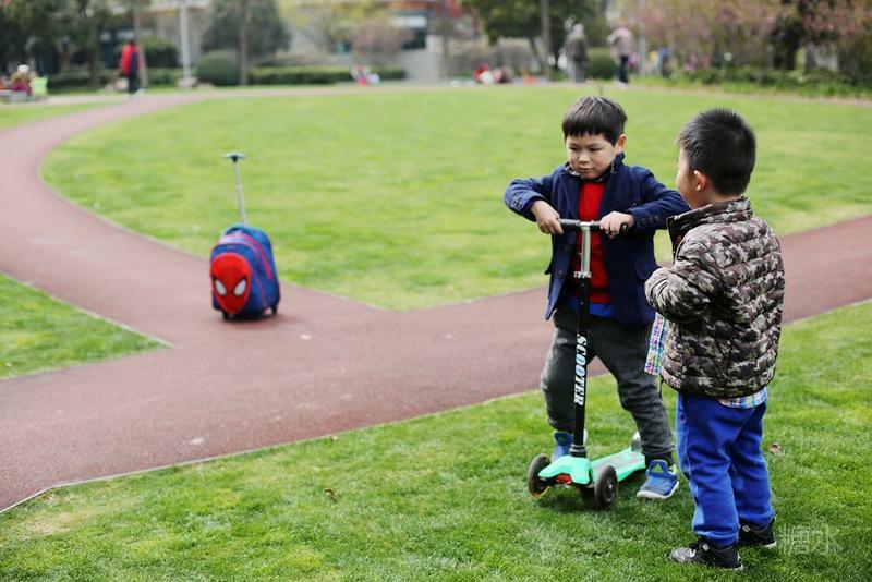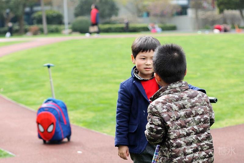 这天宝宝有点咳嗽,请假没有去幼儿园⋯⋯阳光不错,就想让宝宝晒晒太阳。 我们来到静安雕塑公园,宝宝看见红色的步道非常兴奋,因为带着滑板车有了武用之地啦! 遇见一个可爱的小子,然后互相搭讪着玩耍⋯⋯我发现宝宝们交流的神态不错,所以进行跟着拍摄。 至于什么故事,大家自己想吧⋯⋯