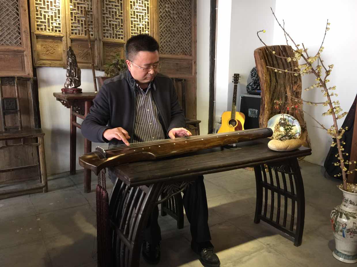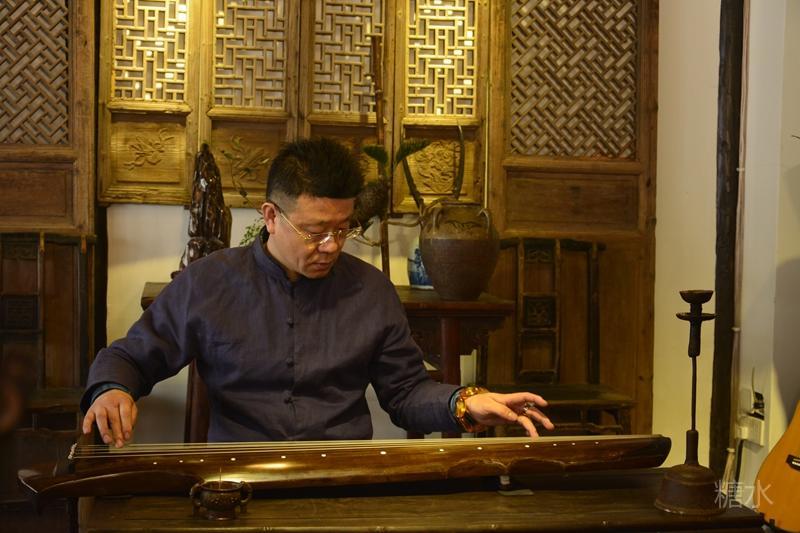 短片有“茶座听曲”,茶楼主人古琴一曲
