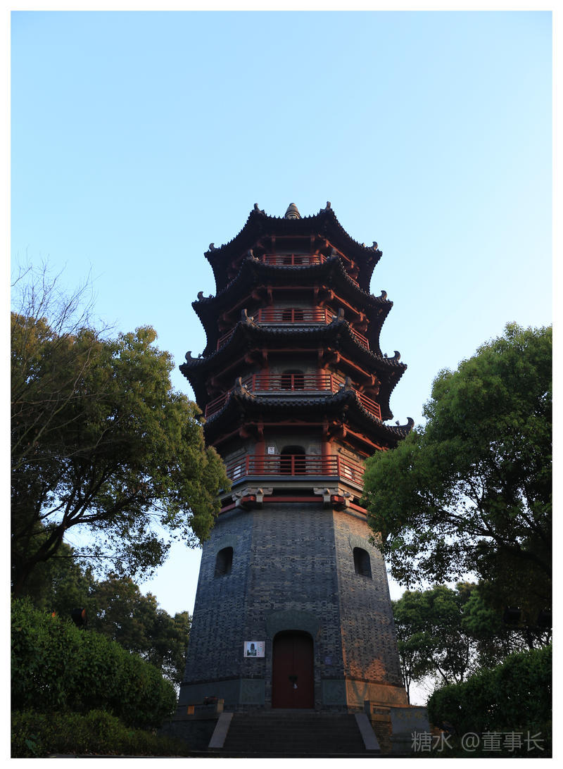 山顶有一塔,名文笔塔。登塔望远,稽山鉴水尽收眼底。