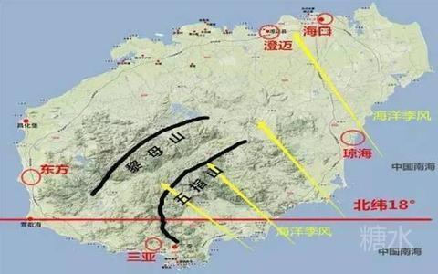 那么,在海南岛,如何用纬度线来划分这两种不同气候的地区呢? 俗话说:东线牛岭,西线佛罗。所谓佛罗,就是乐东县所属的佛罗镇,从地图上看,佛罗和牛岭是处在同一条纬度线上的。 从这个意义上说:在北纬18度范围内具备岭南气候的地区,也只有三亚市的全部,乐东,陵水,保亭这三个市县的南部地区了。