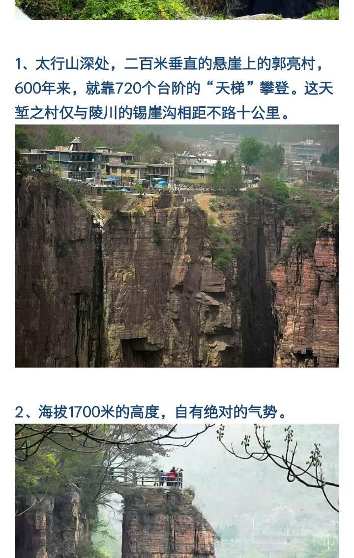 奇观——河南辉县郭亮村 奇迹 占一方险峻 独傲六百年 村人的愚公精神 比村庄的海拔还要高 用神奇创造神奇 世界第九大奇迹 非它莫属 万丈峭壁 与天垂直 路 没有路 只有意志 穿透嶙峋挂在空中 除非人是鸟 俗人免行 如隔世的一处桃源 原始 在这里是百分之百的极致 十三条汉子 无数根钢钎 一个民族的志气 耗取五年的时光 硬朗朗 把一条一千多米长 宽六米的穿石路 挂在千仞峭壁间 站在天间 俯视深渊 登临红尘 仰叹绝伦 此前 文明别想侵入这里 现在 精神打开文明的通路 连名字都带着“辉”的河南辉县 还能名气不响“亮”的郭亮村 独为我中华之绝景 傲骨雄风 震惊世界 2016、4、28、 千层浪作 🍃🍃🍃🍃🍃🍃🍃🍃