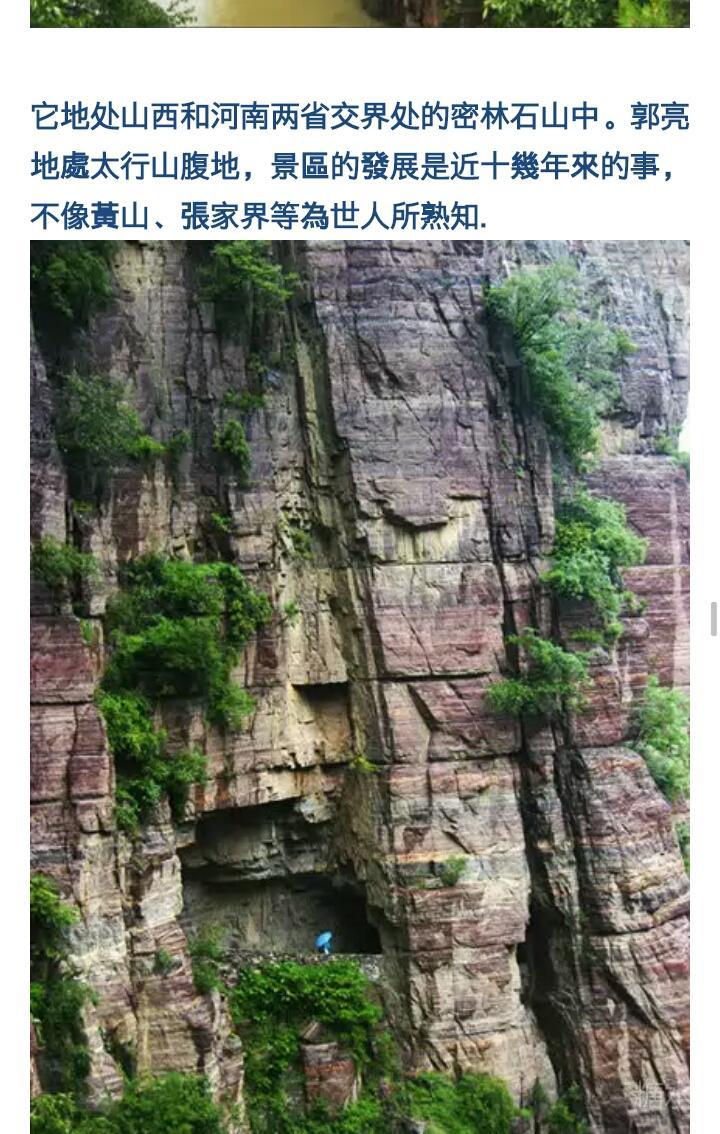 奇观——河南辉县郭亮村 奇迹 占一方险峻 独傲六百年 村人的愚公精神 比村庄的海拔还要高 用神奇创造神奇 世界第九大奇迹 非它莫属 万丈峭壁 与天垂直 路 没有路 只有意志 穿透嶙峋挂在空中 除非人是鸟 俗人免行 如隔世的一处桃源 原始 在这里是百分之百的极致 十三条汉子 无数根钢钎 一个民族的志气 耗取五年的时光 硬朗朗 把一条一千多米长 宽六米的穿石路 挂在千仞峭壁间 站在天间 俯视深渊 登临红尘 仰叹绝伦 此前 文明别想侵入这里 现在 精神打开文明的通路 连名字都带着“辉”的河南辉县 还能名气不响“亮”的郭亮村 独为我中华之绝景 傲骨雄风 震惊世界 2016、4、28、 千层浪作 🌵🌵🌵🌵🌵🌵🌵🌵