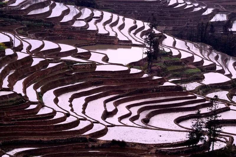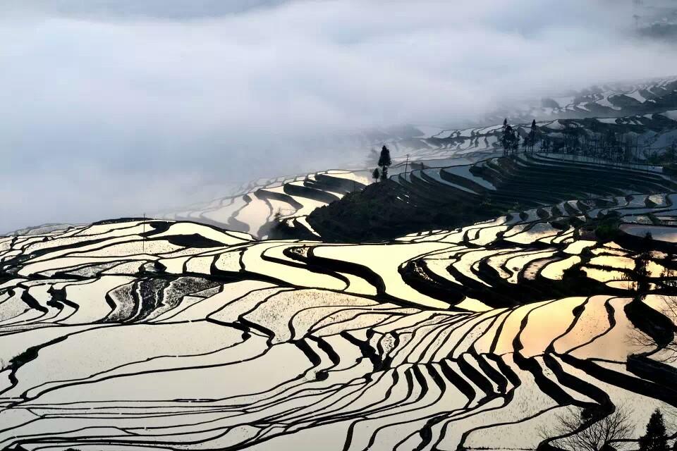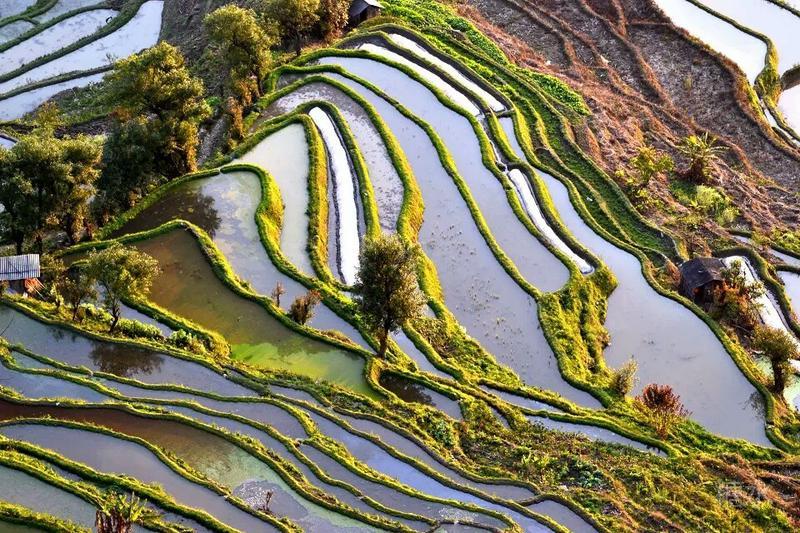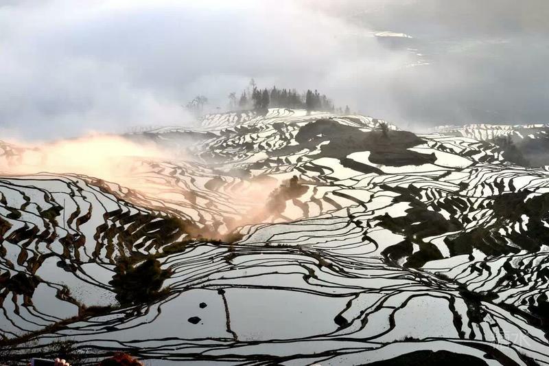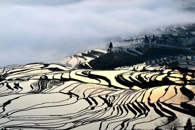 著名的元阳梯田是哈尼族人世世代代留下的杰作。元阳哈尼族开垦的梯田随山势地形变化,因地制宜,坡缓地大则开垦大田,坡陡地小则开垦小田,甚至沟边坎下石隙也开田。今年有幸前往,确实震撼心灵!不得不佩服劳动人民的勤劳和智慧!