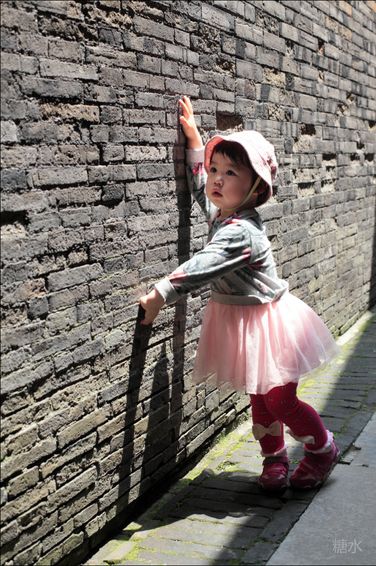老屋、灰墙、小巷道、小模特儿,萌死个人儿。