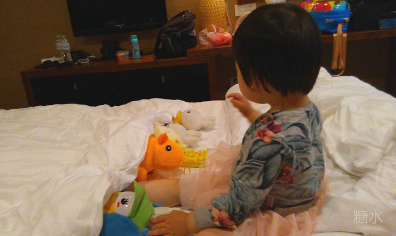 回到酒店,睡前给布娃娃们一一盖好被子。 入住的酒店工作人员很贴心,每天路过大堂时都会送给萌娃一个布娃娃。