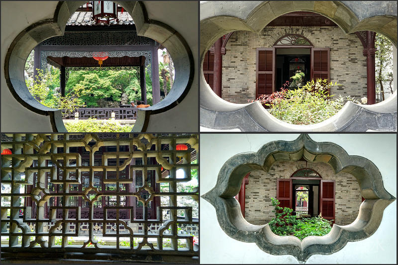 何园的花窗也令人难忘。 回廊的墙上开有许多造型各异的窗口,透过花窗也可以赏景,步移景异。 从西园串楼的花窗可以看到隔壁玉秀楼的西式百叶窗,一栋栋小楼窗对着窗,一眼望去,其景妙不可言。