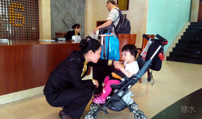 第五天。 要离开了,萌娃主动和酒店的阿姨打招呼,说“阿姨拜拜,我要回家了!”工作人员府下身来和宝贝儿道别。