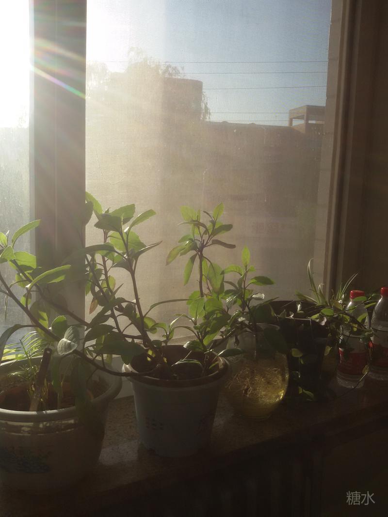 在单位值班的早晨,一缕阳光撒满了窗台,走廊里映出斑驳的光影。 阳光把放满花盆的窗台渲染了一层暖暖朦胧色彩,盆里的花草显得精神了许多,也给枯燥的走廊添了几分情趣。