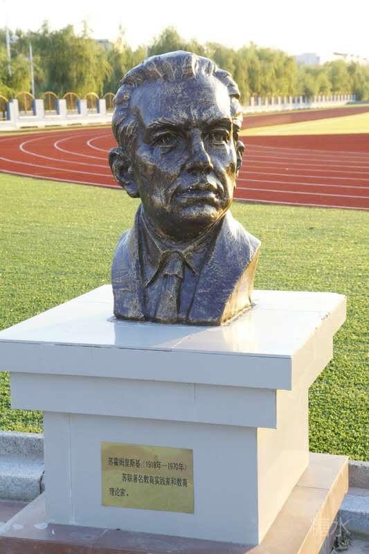 校园内铸有名人塑像,以激励师生树立远大理想,营造勤奋向上的学习氛围。