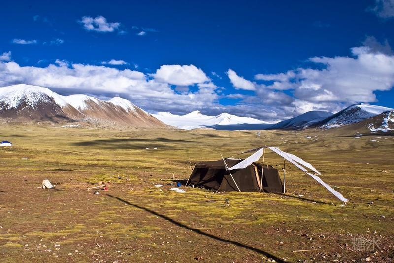 帐篷周围一片荒原,不远处是起伏的雪山,时常见到散落的野生动物,人烟罕见。随着渐多的车辙从我们的帐篷向四方辐射,荒原上慢慢显见了几条清晰的路,我们诙谐地称之为“704公路”(704是大队以前的部队代号)。高原上的天空真的很美,除了雪天之外,天空总是湛蓝湛蓝。飘动的白云会变幻成各种图像,勾起我们浪漫的想象。四月的藏北时而会有漫天大雪不宣而至,雪后,远处的唐古拉山与白色的大地浑然一体,一直伸展到天际与蓝色的天空相交。当我们出测归来时,远远的就会看到我们绿色的帐篷在这银色的世界里格外醒目。