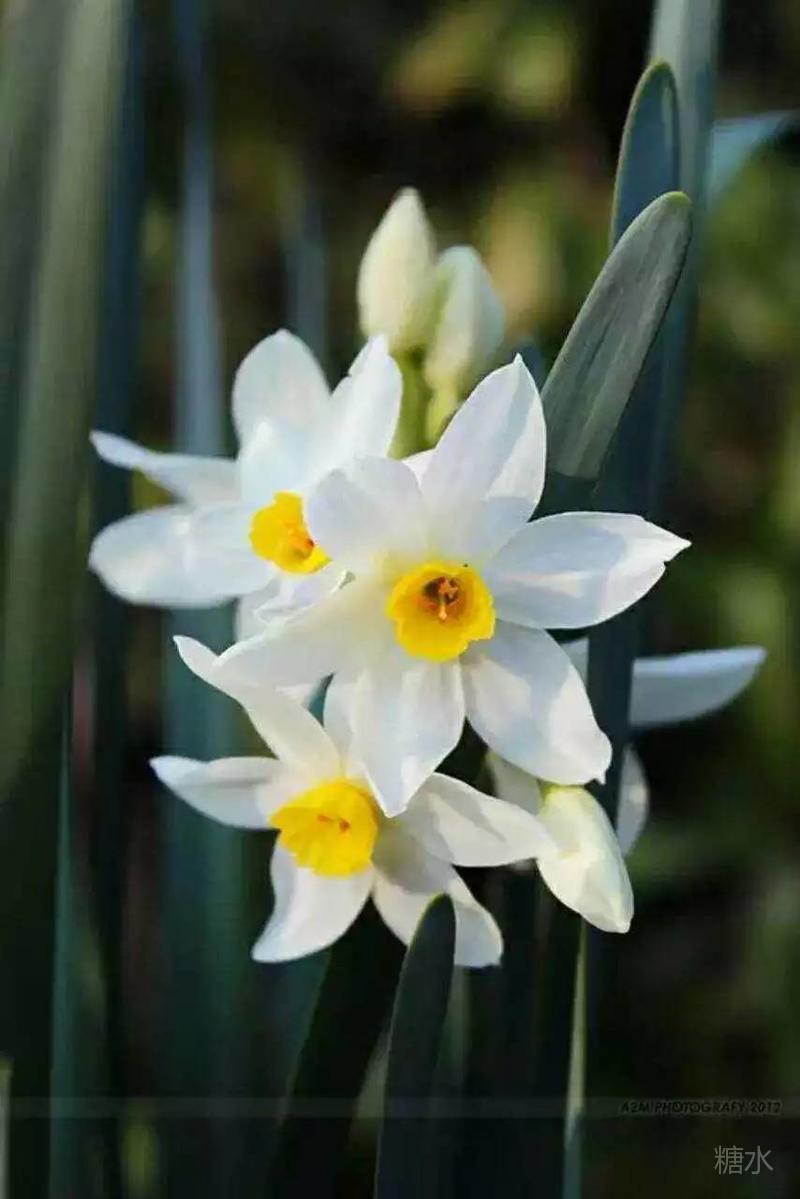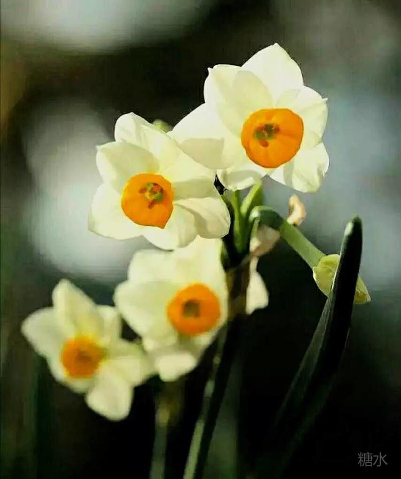 花如金盏银盘,养于水中,清香淡雅,故称"水仙花"。富贵之花。
