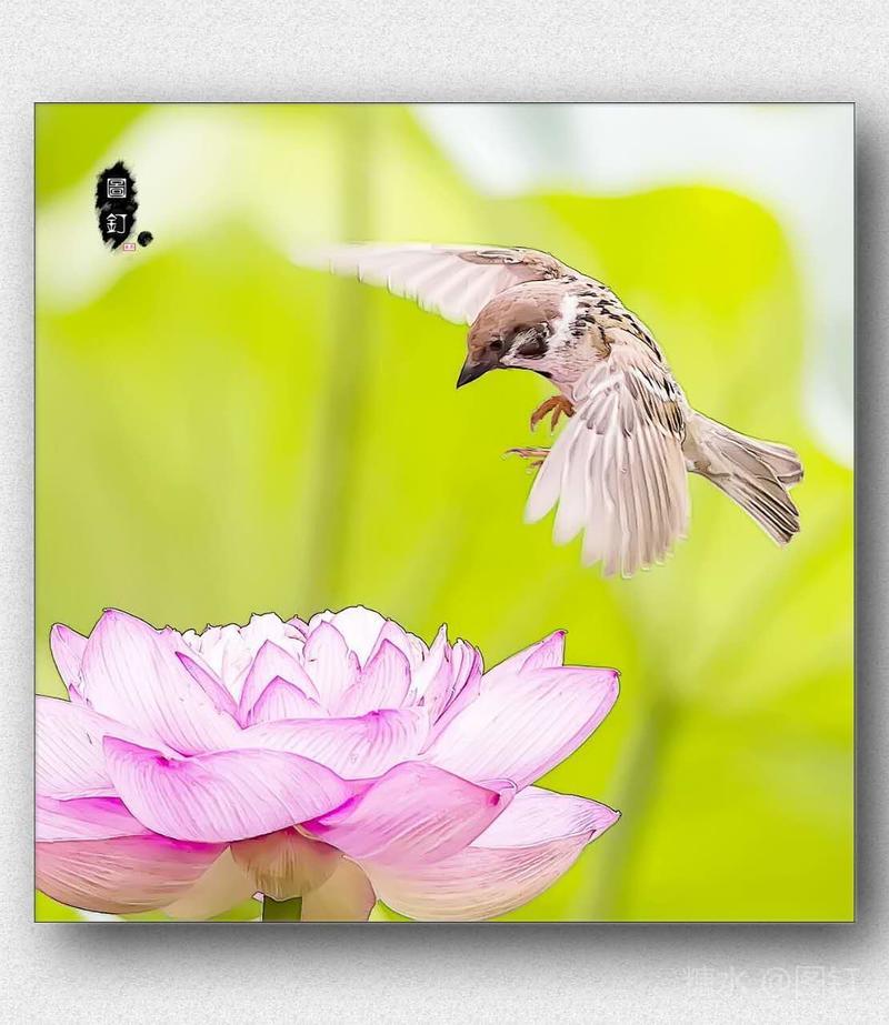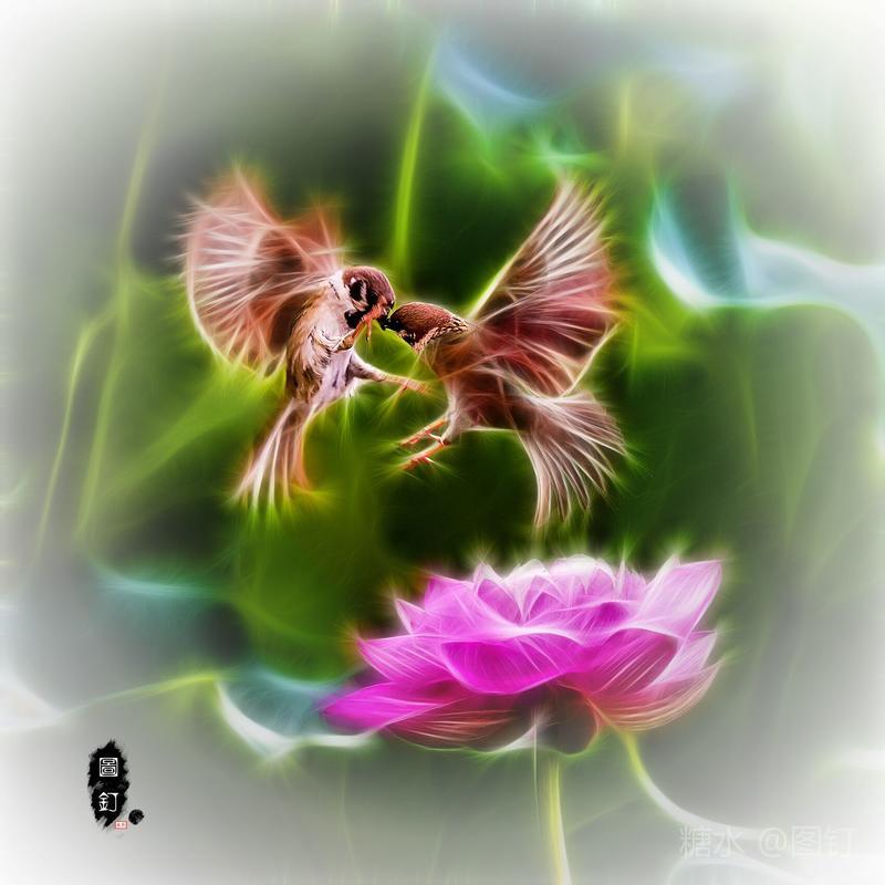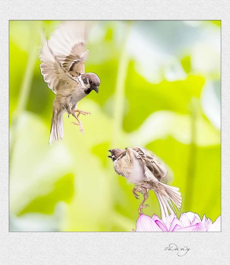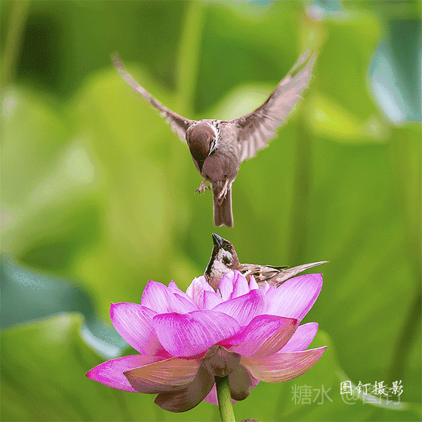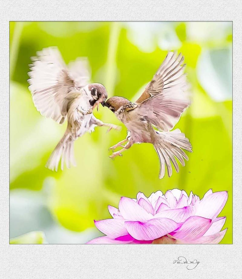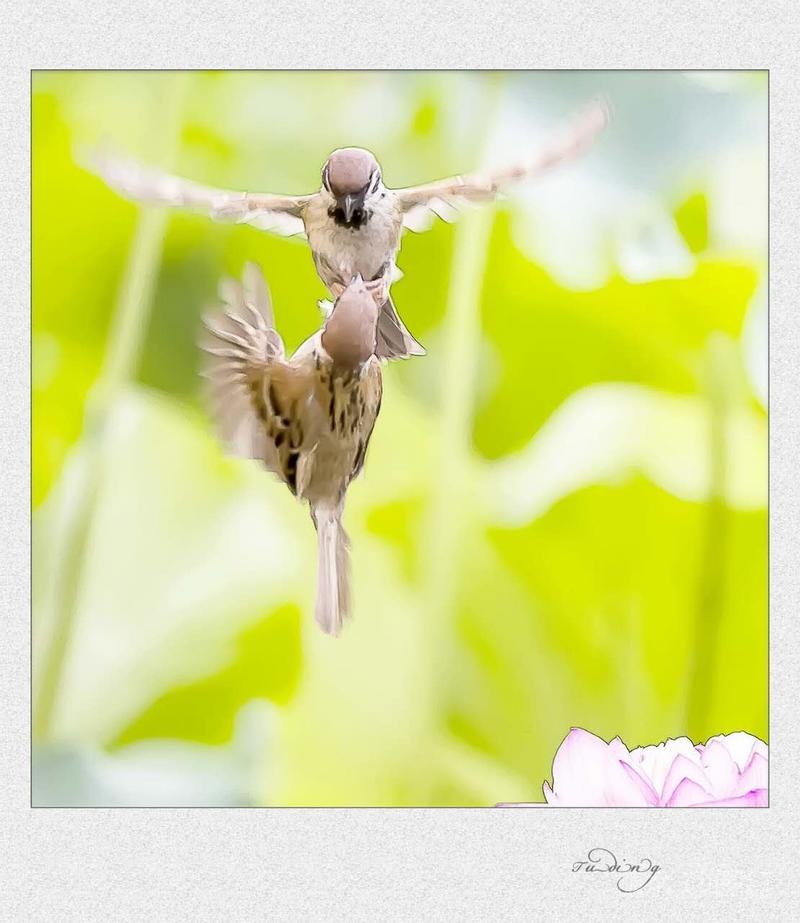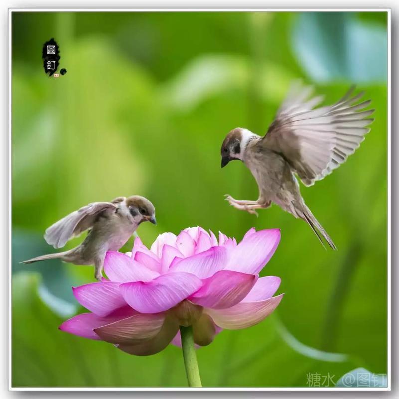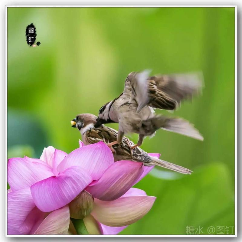 心灵手巧留言: 拍荷容易,戏莲难,成双成对鸟儿戏莲更难拍,鸟儿的情,鸟儿的爱,飞舞在荷上,极美!