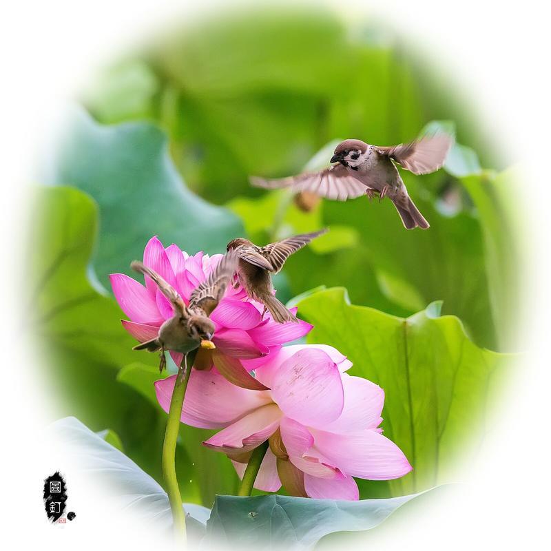 齐云山人留言: 雀戏于莲,精彩在怒放的瞬间!