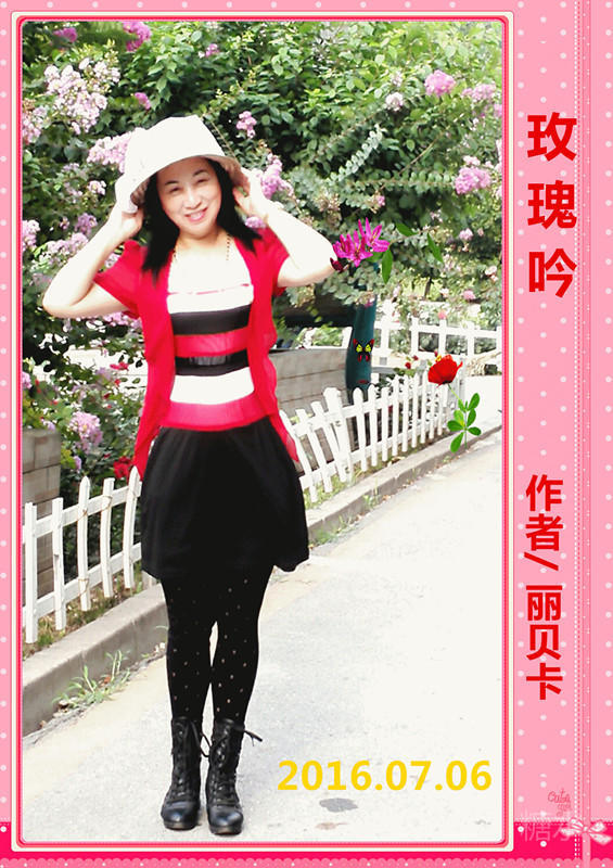 (六) 作者/謝未垚. 溪間柴扉雲雨揚, 玫瑰如綴草盧芳。 人生一快讀姿色, 今日尋歡聞黛妝。 吾魂散,爾癡行。 且吟且賦醉它鄉。 嫣然天染亭亭立, 花韻誰知護短長。 (七) 作者/苦吟斋主 偶忆屏间神采扬, 诗山词海满庭芳。 轻吟浅唱三春色, 傲笑讴歌四季妆。 人已老,泪成行。 归根落叶念家乡。 添霜两鬓残更梦, 怕听鹧鸪怕夜长!
