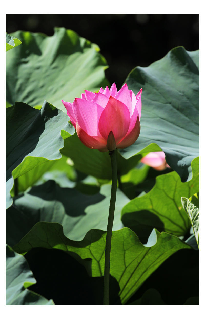 荷花(学名:Nelumbo nucifera Gaertn.),又名莲花、水芙蓉等,属睡莲目,莲科多年生水生草本花卉。地下茎长而肥厚,有长节,叶盾圆形。花期6至9月,单生于花梗顶端,花瓣多数,嵌生在花托穴内,有红、粉红、白、紫等色,或有彩纹、镶边。坚果椭圆形,种子卵形。