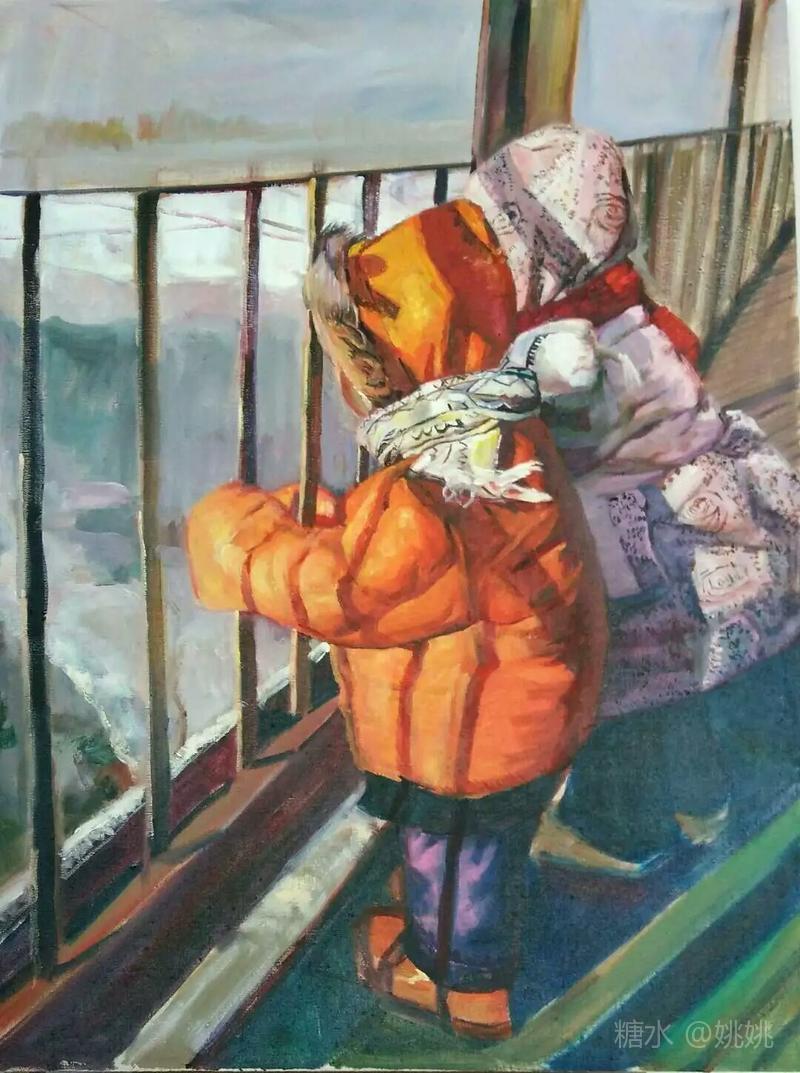冬季松花江老江桥上的两个孩儿