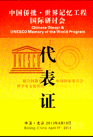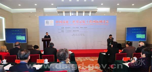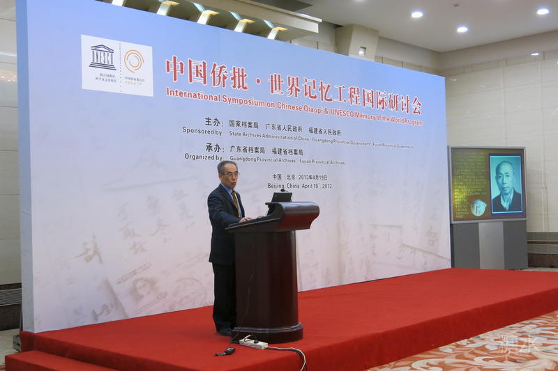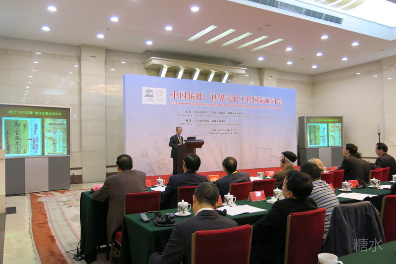 《中国侨批 · 世界记忆工程国际研讨会》会场。这次研讨会是为迎接2013年6月联合国教科文組织世界记忆委员会的召开,"中国侨批"向入选《世界记忆名录》的最后冲刺。