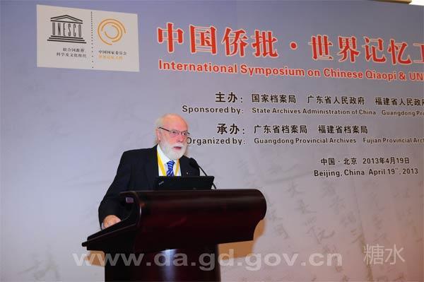 世界记忆工程国际咨询委员会委员、世界记忆工程亚太地区主席 瑞 · 埃德蒙森在研讨会上致辞:侨批中所涉及的人群成千上万,他们作为国际移民承载着东西方的交流并持续数个世纪,留下这些丰富的文献并不仅仅属于他们自己,也属于一个时代,属于世界。侨批是华侨华人记忆中不可磨灭的历史符号,是世界人民的共同记忆。