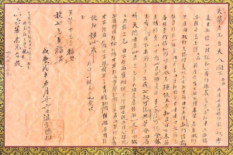 这是一个半世纪前,清代咸丰戊午年(1858)印尼华侨寄嘉应州亲朋的纸质侨批文献。