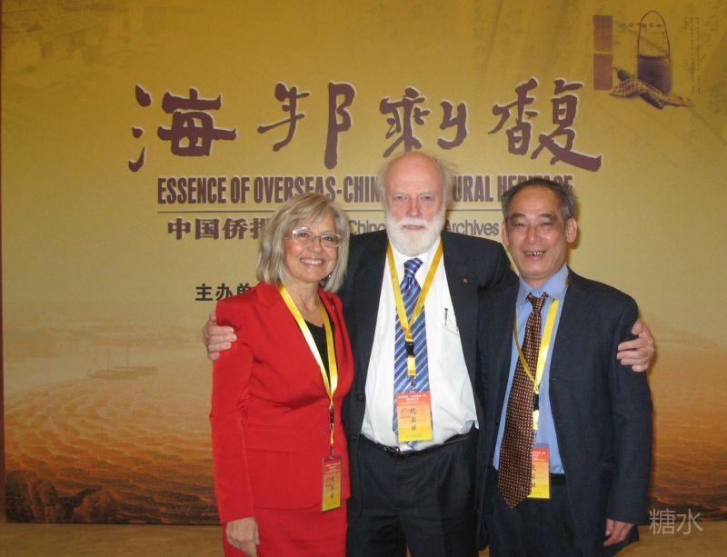 笔者与联合国教科文组织世界记忆工程委员会主席瑞·埃德蒙森(中)、联合国教科文组织世界记忆工程委员会委员露西安娜(左)合影。