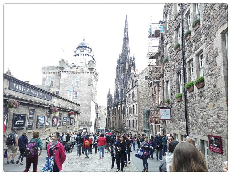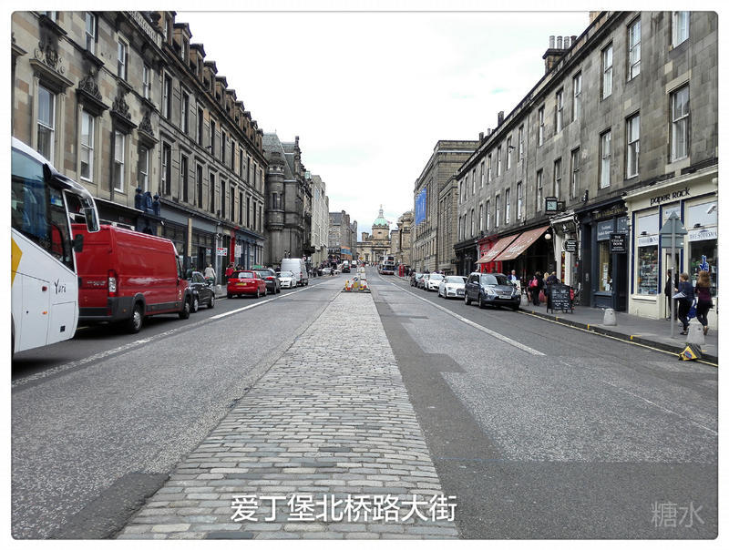 如果把爱丁堡城比作一个盾形徽章,那么,在正中间竖向延伸的大路,是以北桥路为代表的街道。而几乎与之垂直相交的则是由爱丁堡城堡到圣十字架宫的皇家哩(哩,多音字,可读成lī,lǐ,yīnglǐ,这里读yīnglǐ英里,故皇家哩大道又叫皇家英里大道)大道。