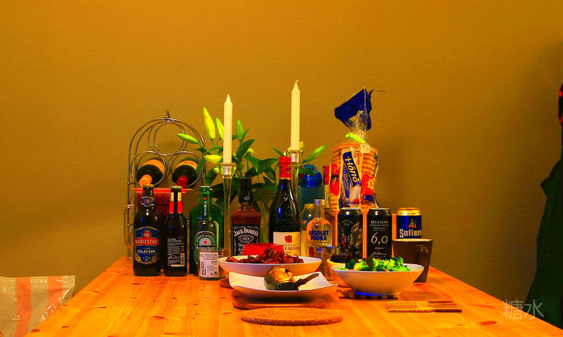 吃小龙虾大多在室外,亲朋好友一起坐在花园里,餐桌上除小龙虾外,还必须有当地自制的烧酒,烟熏鳗鱼,奶酪,和小红萝卜。有些人还头戴各式特色的帽子,大家欢歌热舞,节日的气氛热烈。瑞典地处北欧,气候凉爽。八月的天气,已经像我们中国的秋天,凉风习习,各色鲜花盛开。这时的小龙虾,也和螃蟹一样,肉肥黄满。手握小龙虾,举杯交错,那场景, 颇有我们,持螯把酒、仰问青天:今夕是何年的韵味! 不论在瑞典南方的哪个城市,有很多特殊的节日。如:土豆节、仲夏节(庆祝夏至到来;) 五旬节(是庆祝春天来临;)、 劳动节(表示社会民主;),圣露西亚节,(期盼黑夜过去,光明到来。)瑞典国庆日等等。到8月一个重要的节目,就是小龙虾节。成百上千的人,自带小龙虾,聚在广场上一起狂欢、饮酒,随着乐队高歌。这一天那酒香和虾香,弥漫在整个城市上空,久久不散,可惜的是由于语言不通,女儿要给我们报名参加被我婉言谢绝了,现在想起来还有点后悔呢!