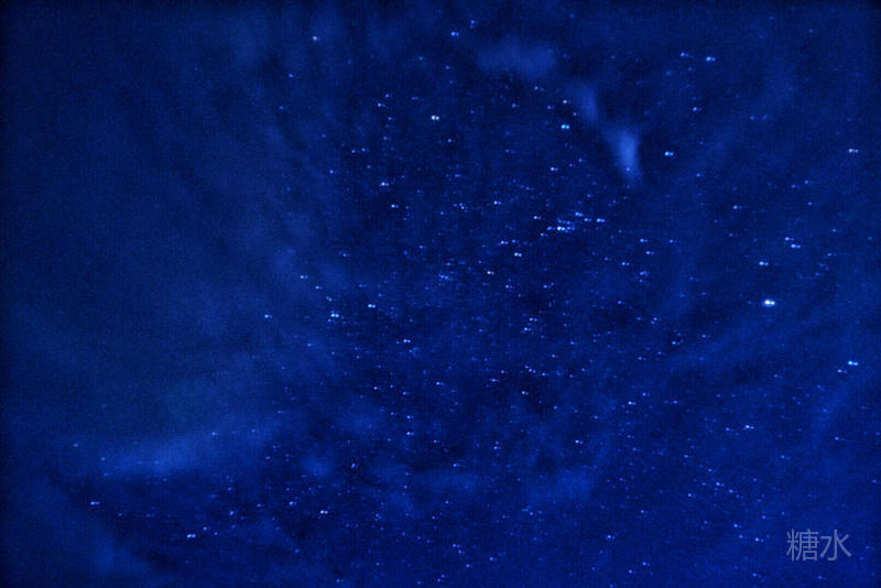 为了不影响俺家先生睡觉,不敢开灯,摸摸索索走到小客厅戴上新买的头灯,在客栈的露台架上三脚架,把iso设置到3200,焦距无穷远,色温3700……调整角度试拍。